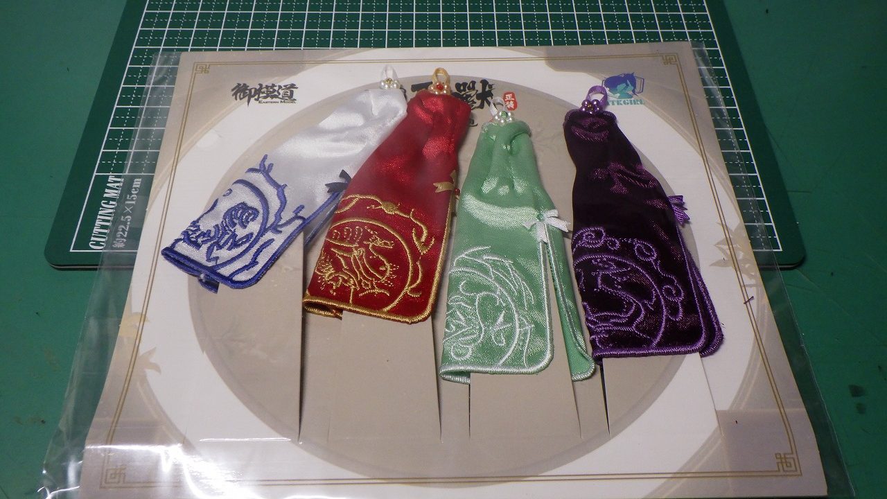 立体縫製になっており、刺繡の模様は全て異なり白虎、朱雀、玄武、青龍の四聖獣になっている