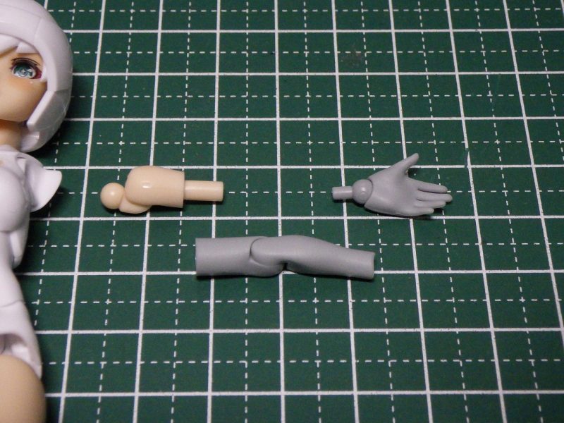 腕は4ミリボールジョイント接続、二の腕は3ミリ軸、手首は2ミリ軸