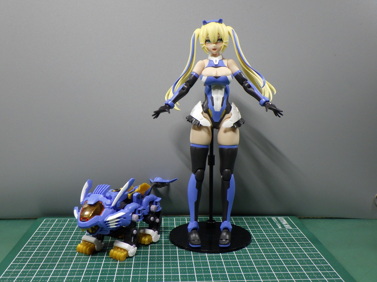 造形もいつもの安心のコトブキヤクオリティで、髪の毛がシャープで折りそうで怖いです。カスタム軸径も3ミリになっており、他のシリーズのパーツとのカスタマイズも出来ます。ブレードライガーも小さいながらデフォルメの出来が良く、可愛いくもカッコよく仕上がっています。